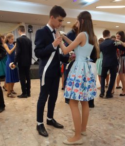 V piatok prváci ukončili kurz tanca a spoločenského správania sa v Tanečnej škole Betky Ligovej veľkolepým tanečným večierkom.